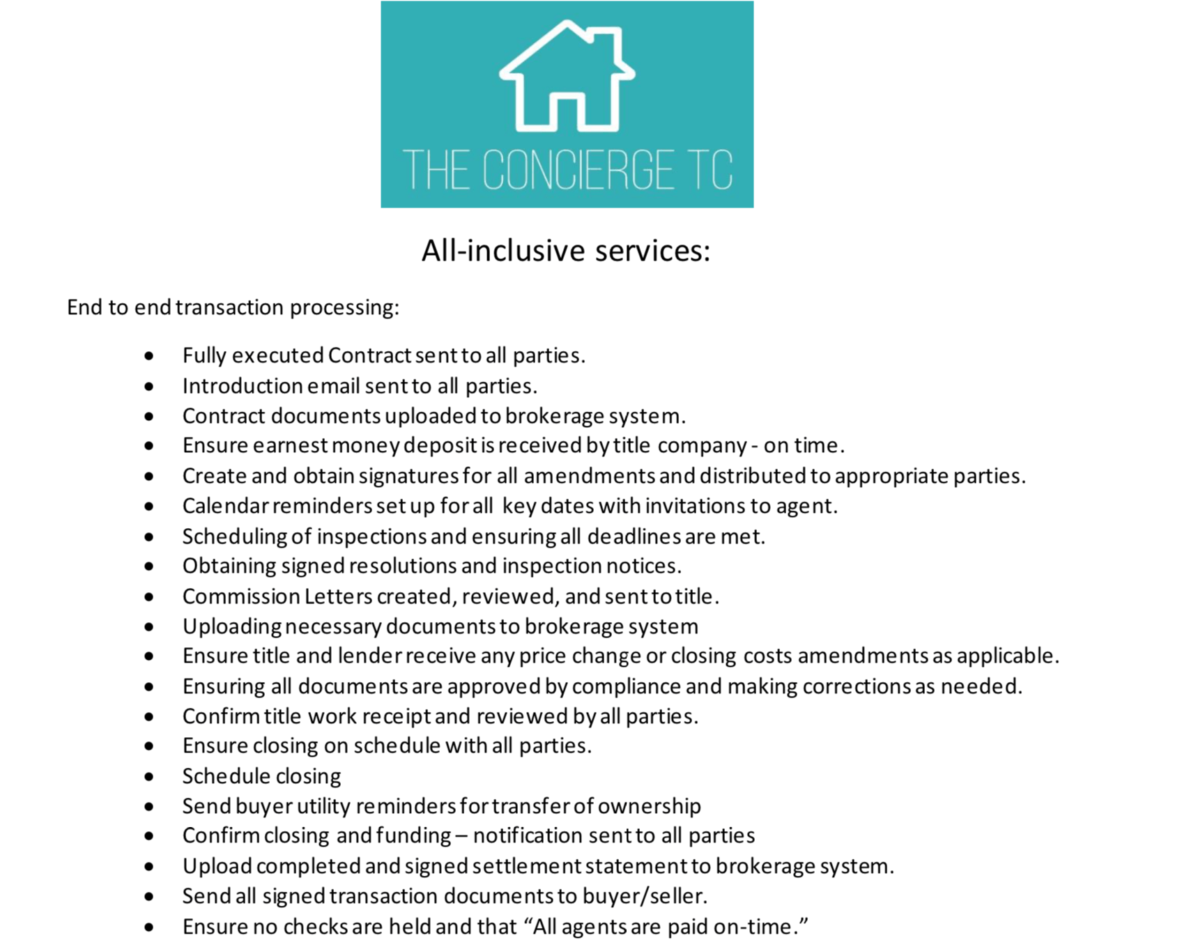 My TC's knowledge, availability, and professionalism helped me close more transactions than I could have ever done on my own while maintaining a healthy work/life balance. She was always willing to get the work done when it was time sensitive and gets deals closed. Her assistance helped keep me free to take on more business and convert leads."